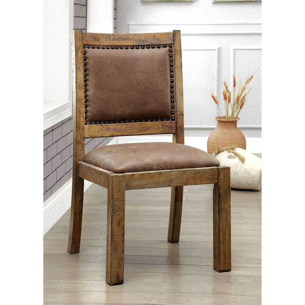 With a nutmeg finish, antiqued nailhead trim, and textured polyester fabric, this upholstered dining chair with classic x back styling entice with warmth and earthy elegance. Brown copper metal wood counter stool kitchen dining bar chairs rustic new ( set of 4 ) by costway (14) dex smookey walnut ladder back side chair set (4). When you buy a union rustic neihoff upholstered dining chair online from wayfair, we make it as easy as possible for you to find out when your product will be delivered. Our rustic dining chairs catalog features a collection of old wood, alder, and mesquite chairs with authentic, spanish style flair. These chairs are constructed from acacia wood in a versatile natural finish.